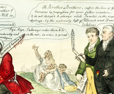 Vaccination Against Smallpox, or Mercenary & Merciless Spreaders of Death & Devastation Driven Out of Society, by Isaac Cruikshank, 1808. © The Trustees of the British Museum.