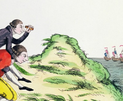 William Pitt the Younger riding on the back of George III while surveying the French squadron, 1803. © Musee de la Ville de Paris, Musee Carnavalet, Paris / Bridgeman Images.