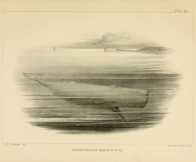 Illustration: Sperm Whale in Search of Food, by C.M. Scammon, 1874. Wikimedia Commons.