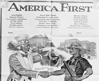 America First poster, c. 1911. Photograph by Harris & Ewing. Library of Congress, Prints and Photographs Division.