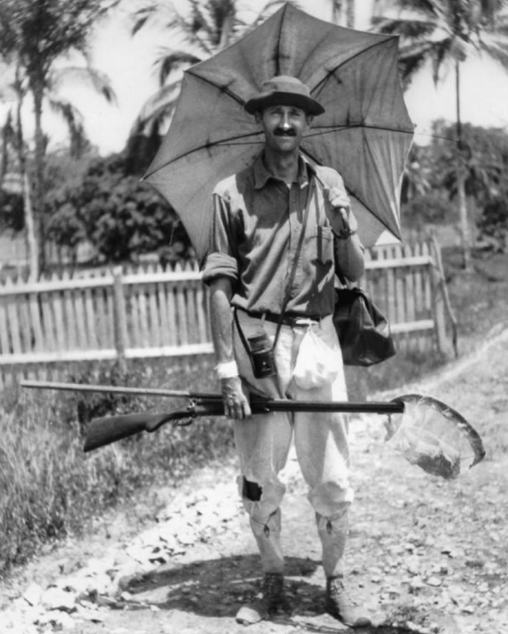 Considered one of the founders of ecological study, William Beebe traveled to Asia, South America, and the Galapagos Islands to conduct research on tropical birds in the 1910s and 1920s. In 1925 he began helmet diving and discussed the possibility of deeper dives with his friend Theodore Roosevelt, but neither man had the engineering skills to create a proper vessel. In 1949 he founded a research station in Trinidad; his work there continued until his death from pneumonia in 1962.