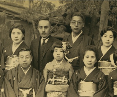 Kensuke Ishizu (far right, top row) on his wedding day, March 1932. Courtesy of the Ishizu family.