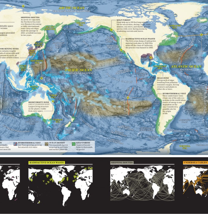 Ocean. A body of water occupying about two-thirds of a world made for man—who has no gills.