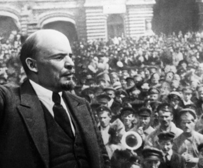 Lenin addresses a crowd, c. 1917. Flickr Commons.