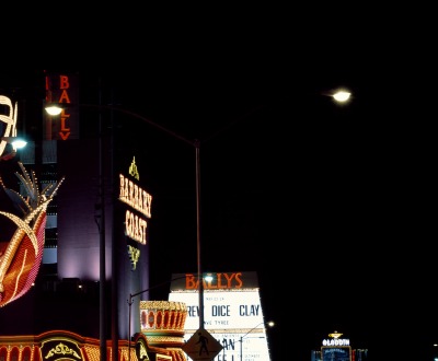 Neon signs shine in Las Vegas, Nevada in the early 1980s. Photographer Carol M. Highsmith, Library of Congress.
